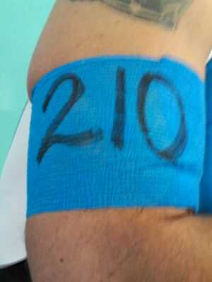 Nope! Even better, I got my own lane when my turn came. The swim was a planned 500yds, or as they put it, "10 laps." No, it's 20 laps, a lap is one way, but whatever. We had lane counters to double check us and keep times. I did a few warm-up laps, felt great, and was ready.