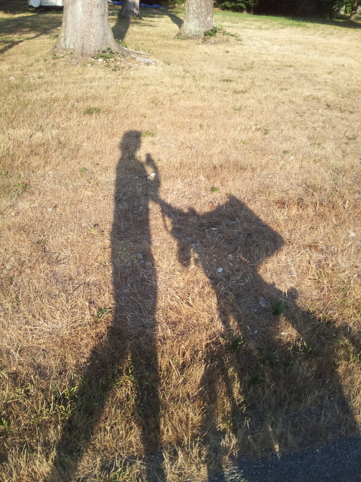 I was first out of the water, and ran alone for about a mile before anyone caught up. I wouldn't have run fast anyway, but the stroller slows me down a little more. Luckily, the run was flat, so it wasn't that tough. We had a nice little run. My Garmin said it was 2.5mi. Informal races don't track distance exactly. Whatever, a shorter run is better for me.